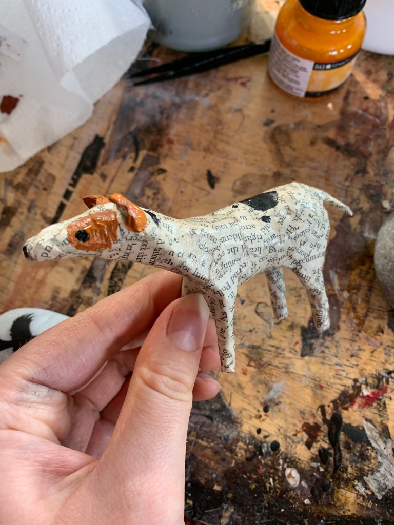 My paper dogs are hand made from recycled vintage book pages